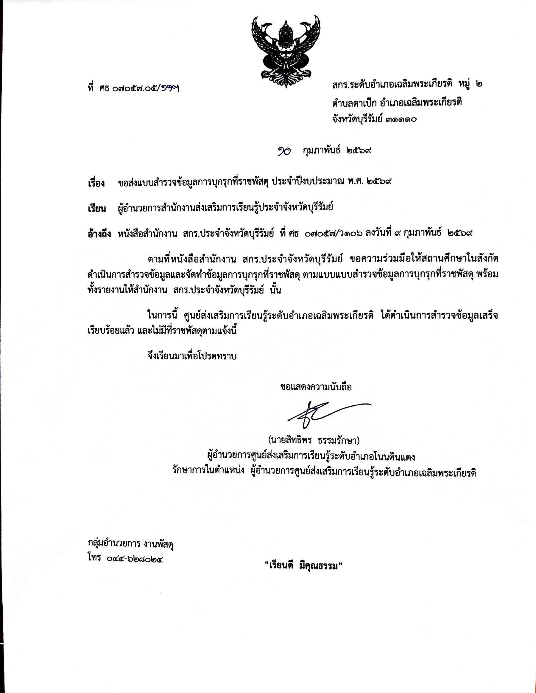 ขอส่งแบบสำรวจข้อมูลการบุกรุกที่ราชพัสดุ ประจำปีงบประมาณ พ.ศ.2569